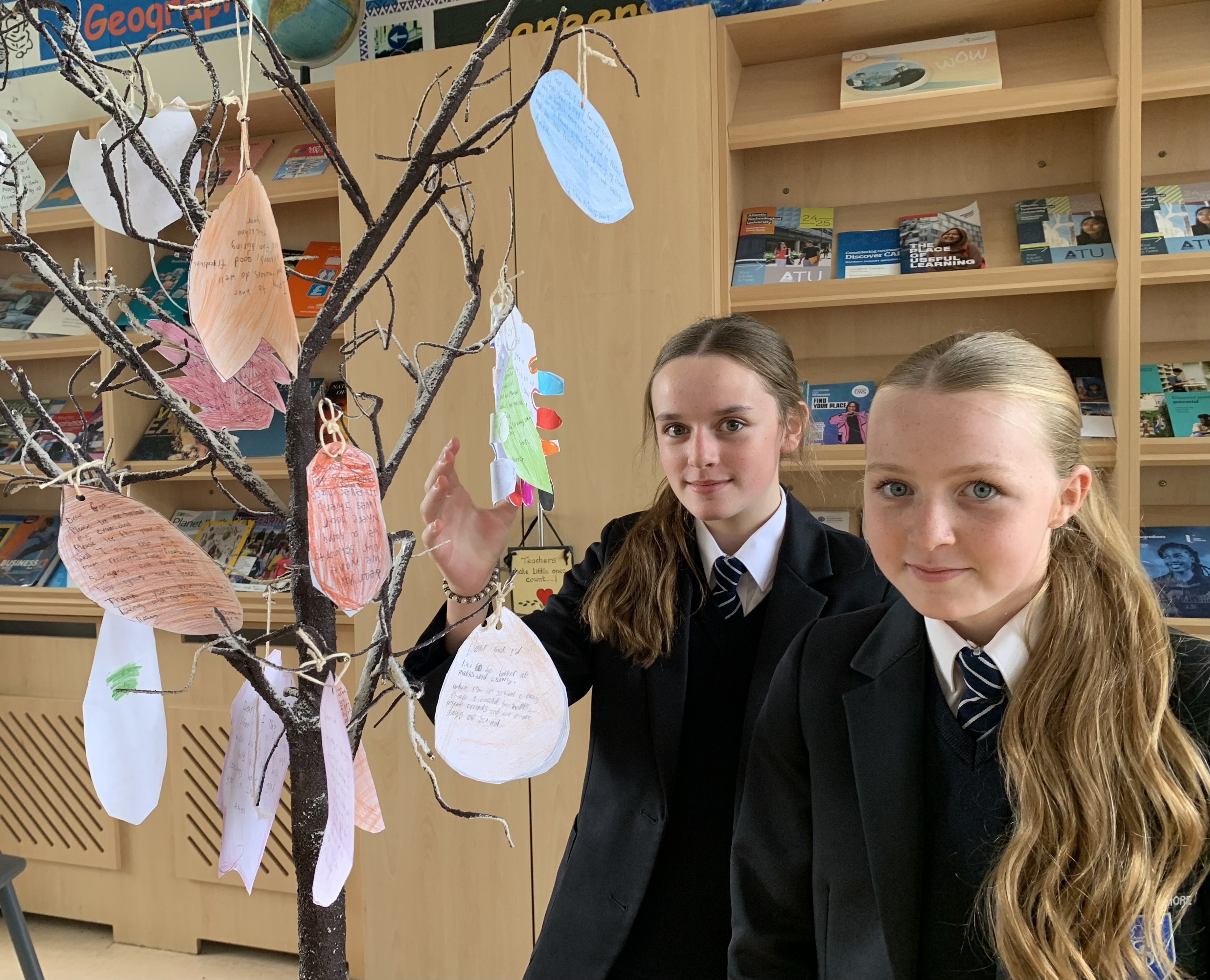 The students wrote their own personal prayer for the year ahead. During a beautiful class service, they shared these prayers by hanging each one on their own class tree.