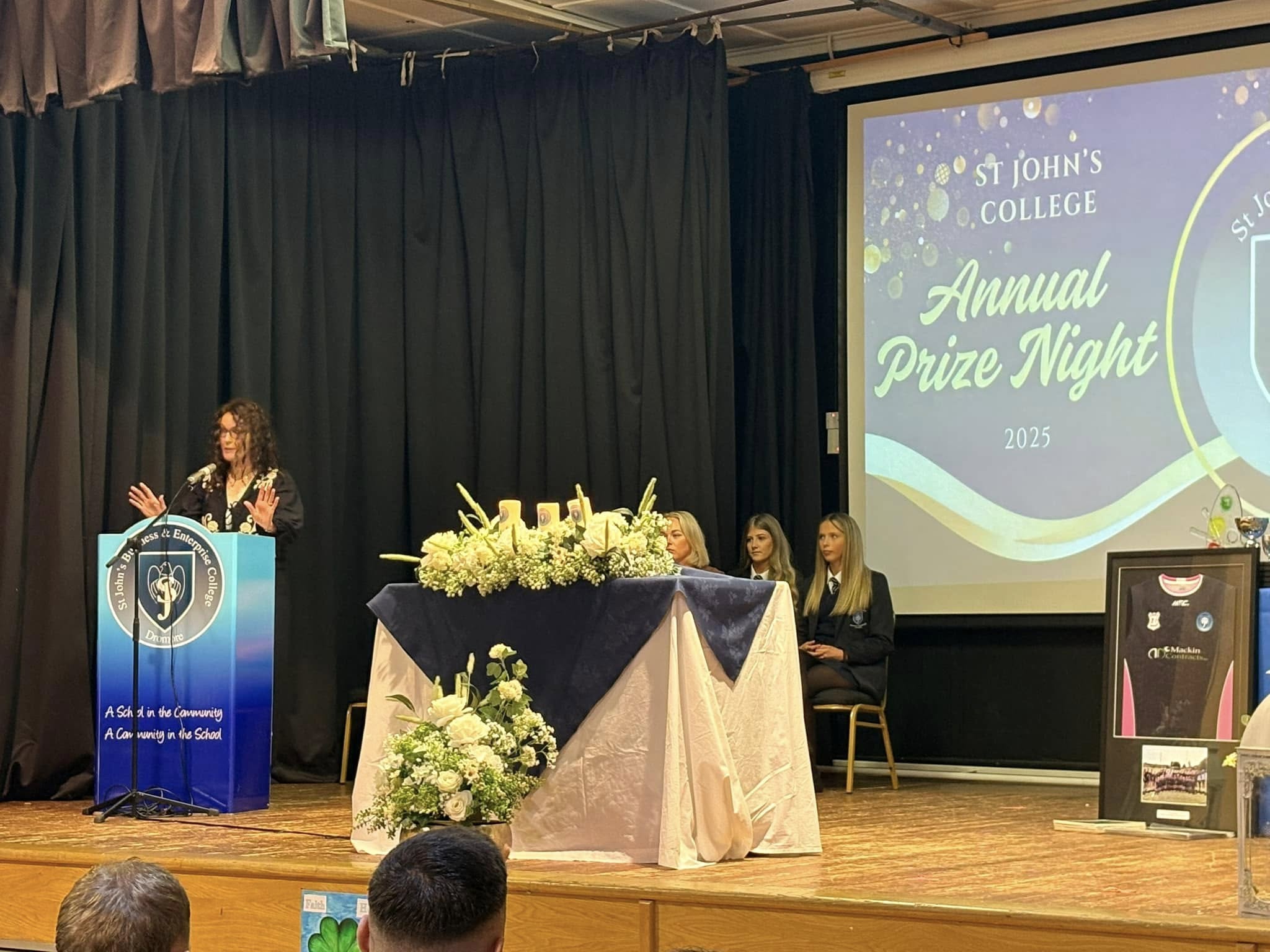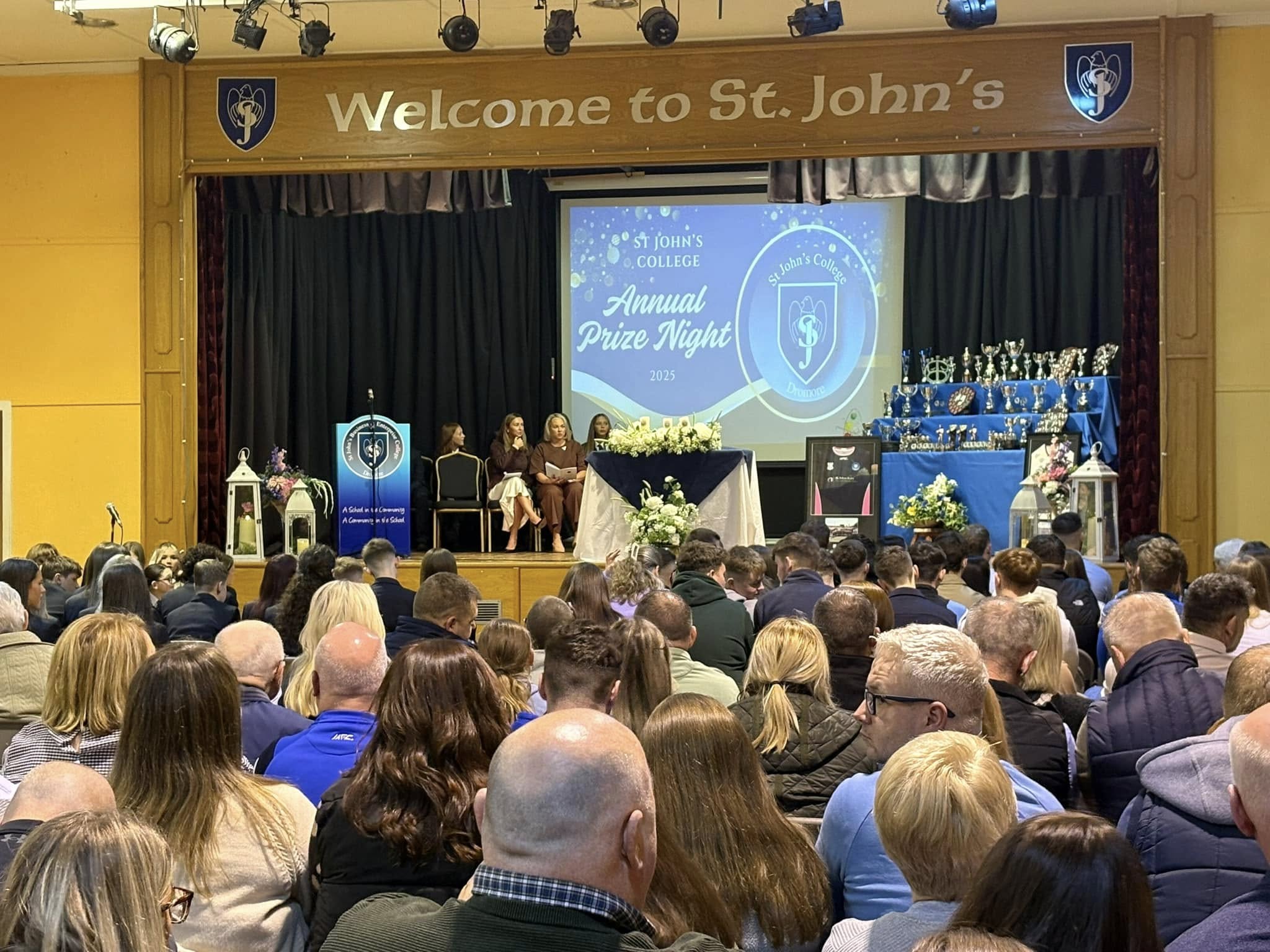 Prize Night 2025 October 17, 2025October 20, 2025 by St. Johns Prize Night 2025 Thank you to everyone who came along tonight to celebrate with our students. Congratulations to Emma McGinn – GCSE Student of the Year and Rhys Garrity – Top GCSE Boy of the Year pictured with our guest speaker Finbar McCann.